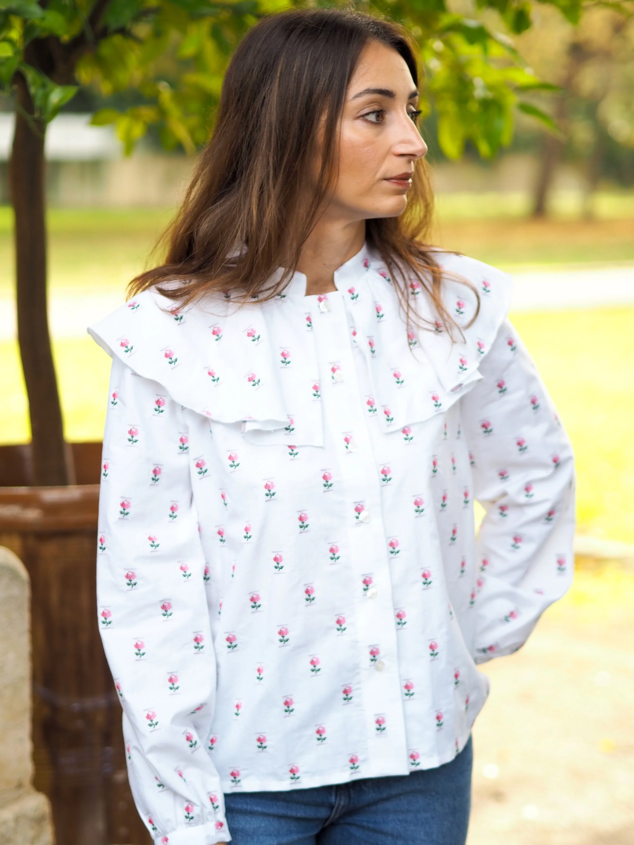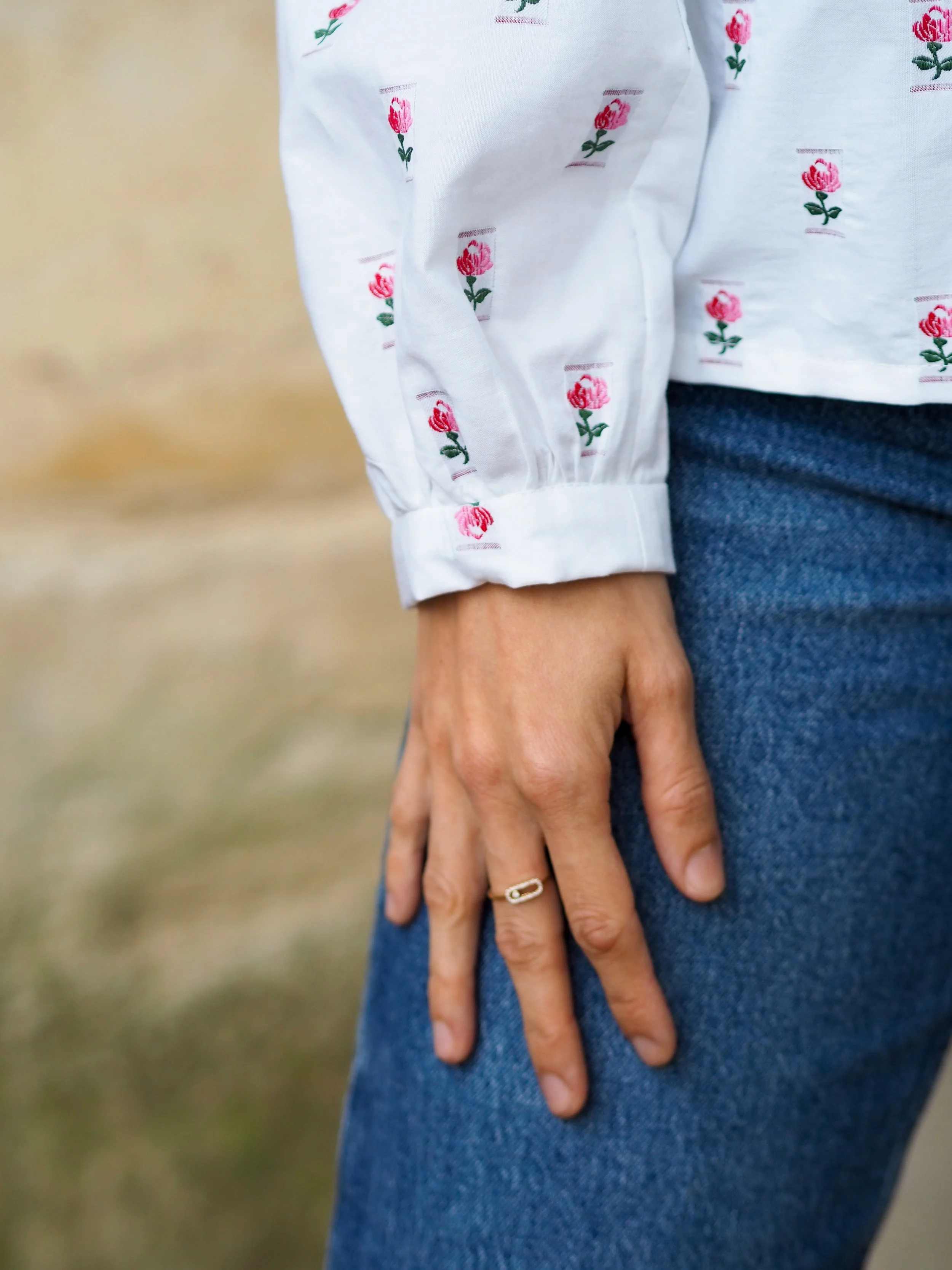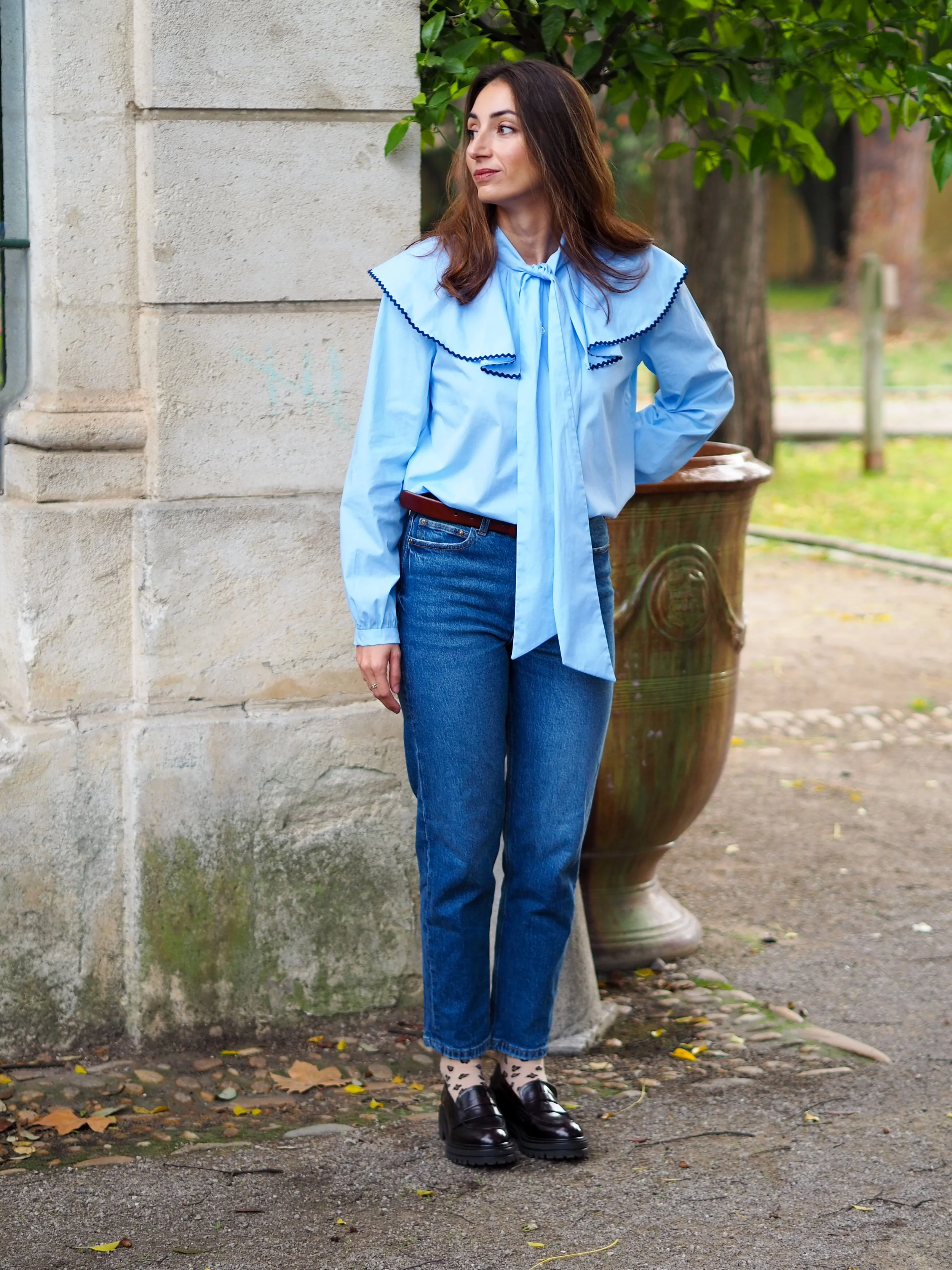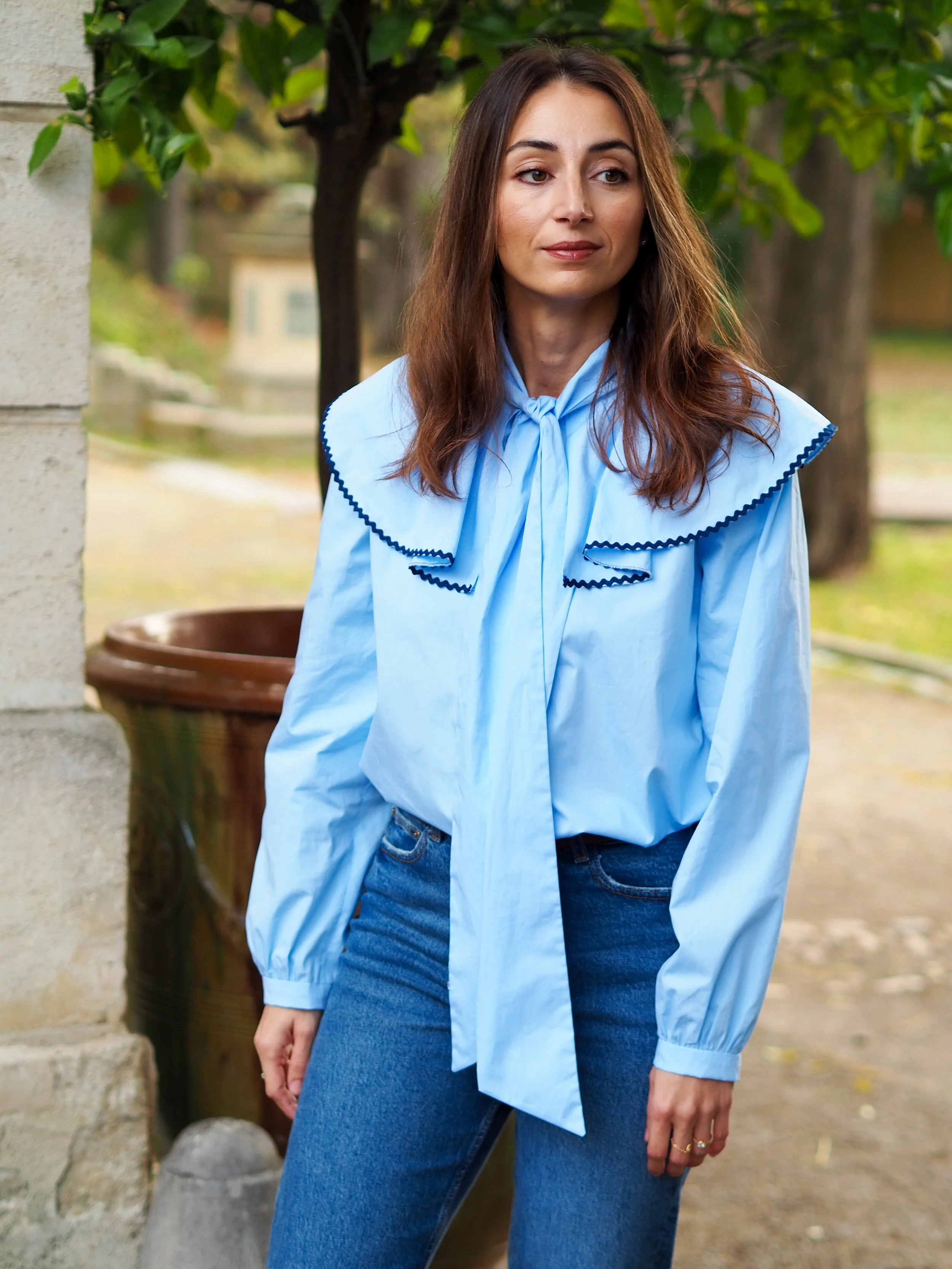 Les manches bouffantes se terminent pas un bracelet de manche afin d’apporter un peu de simplicité.