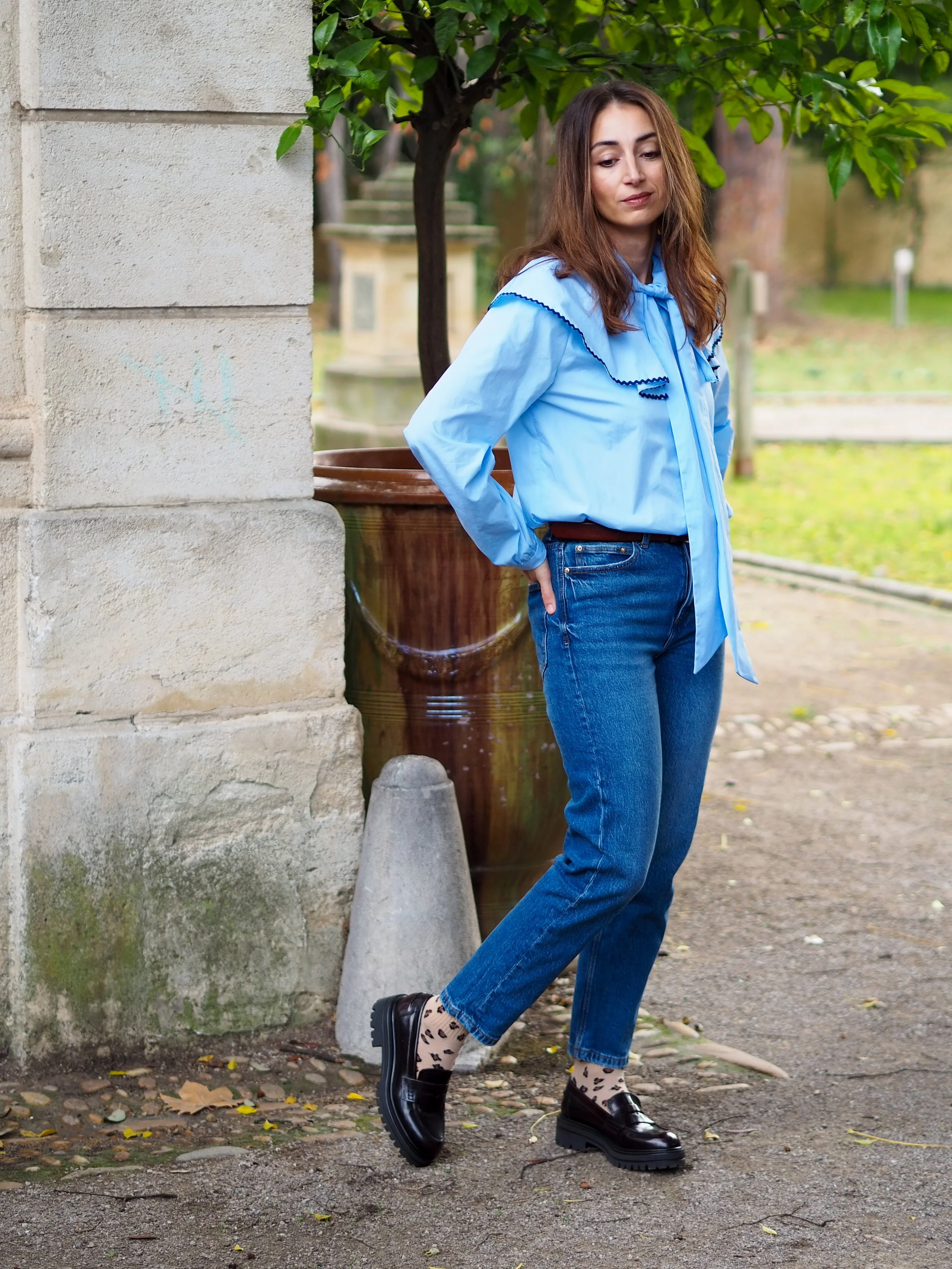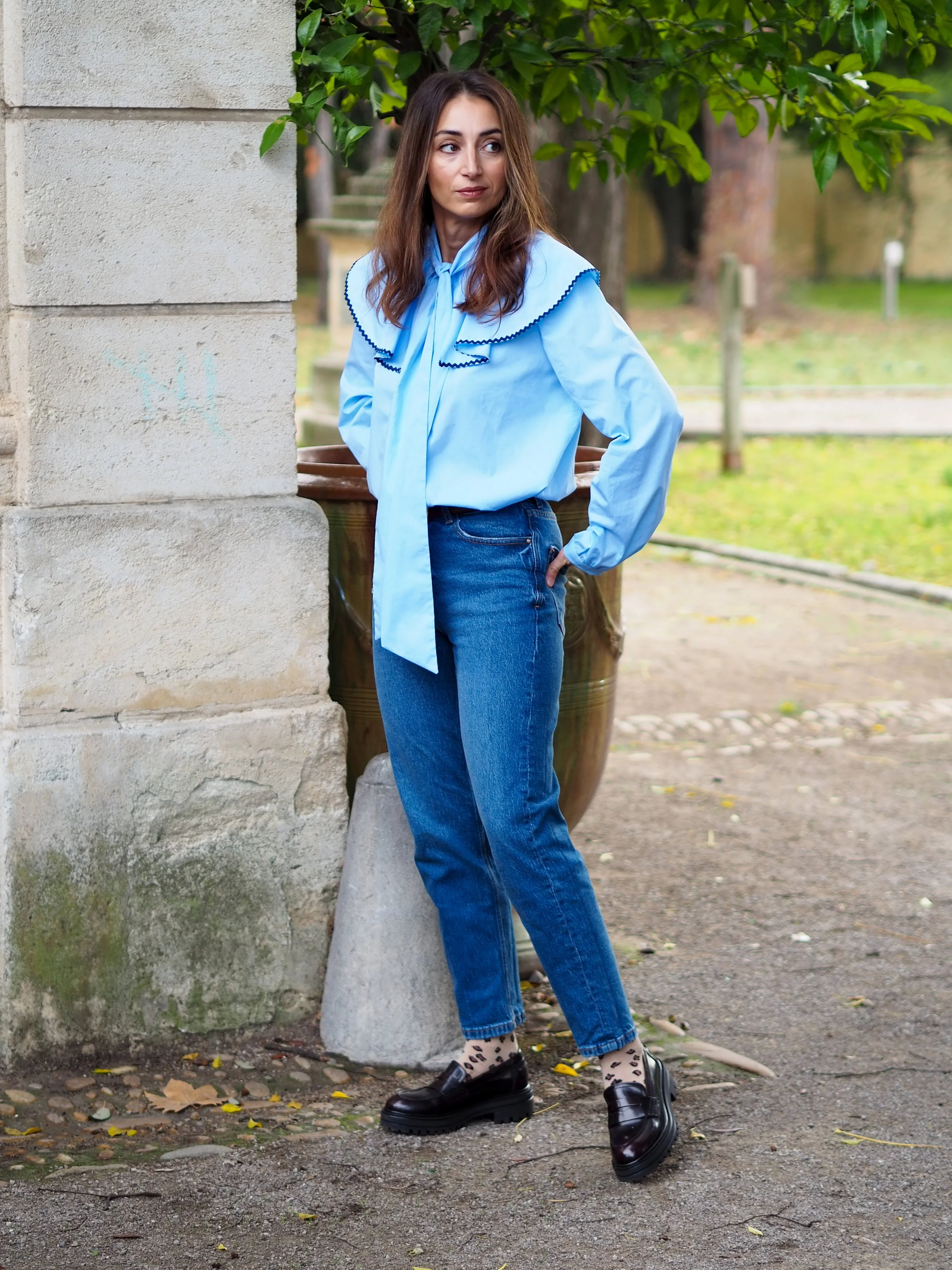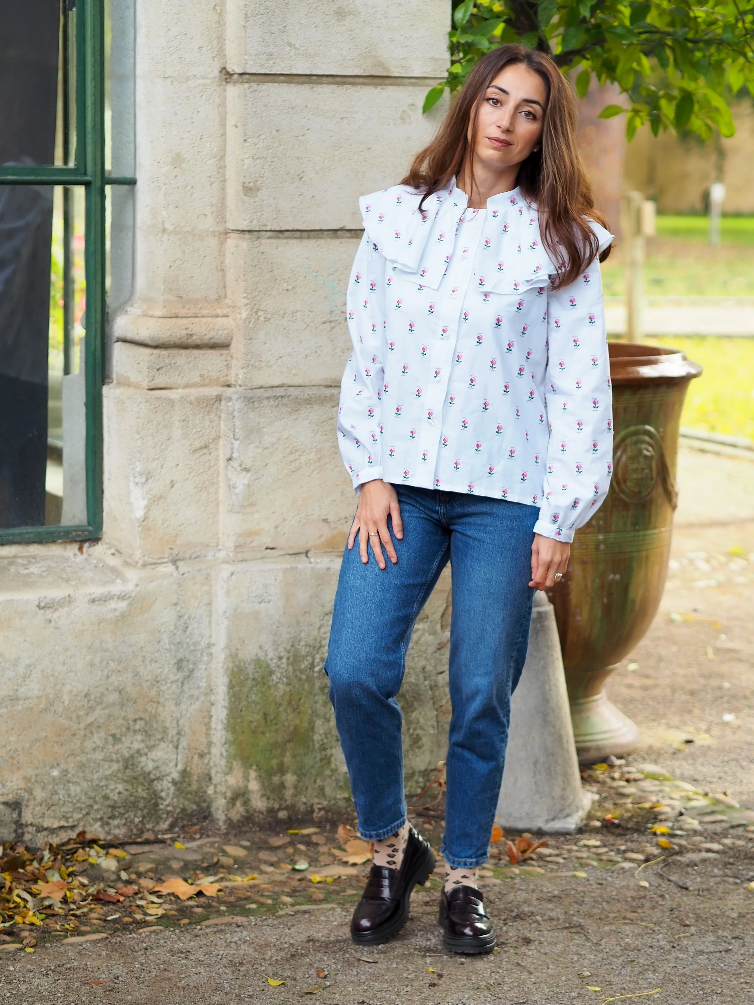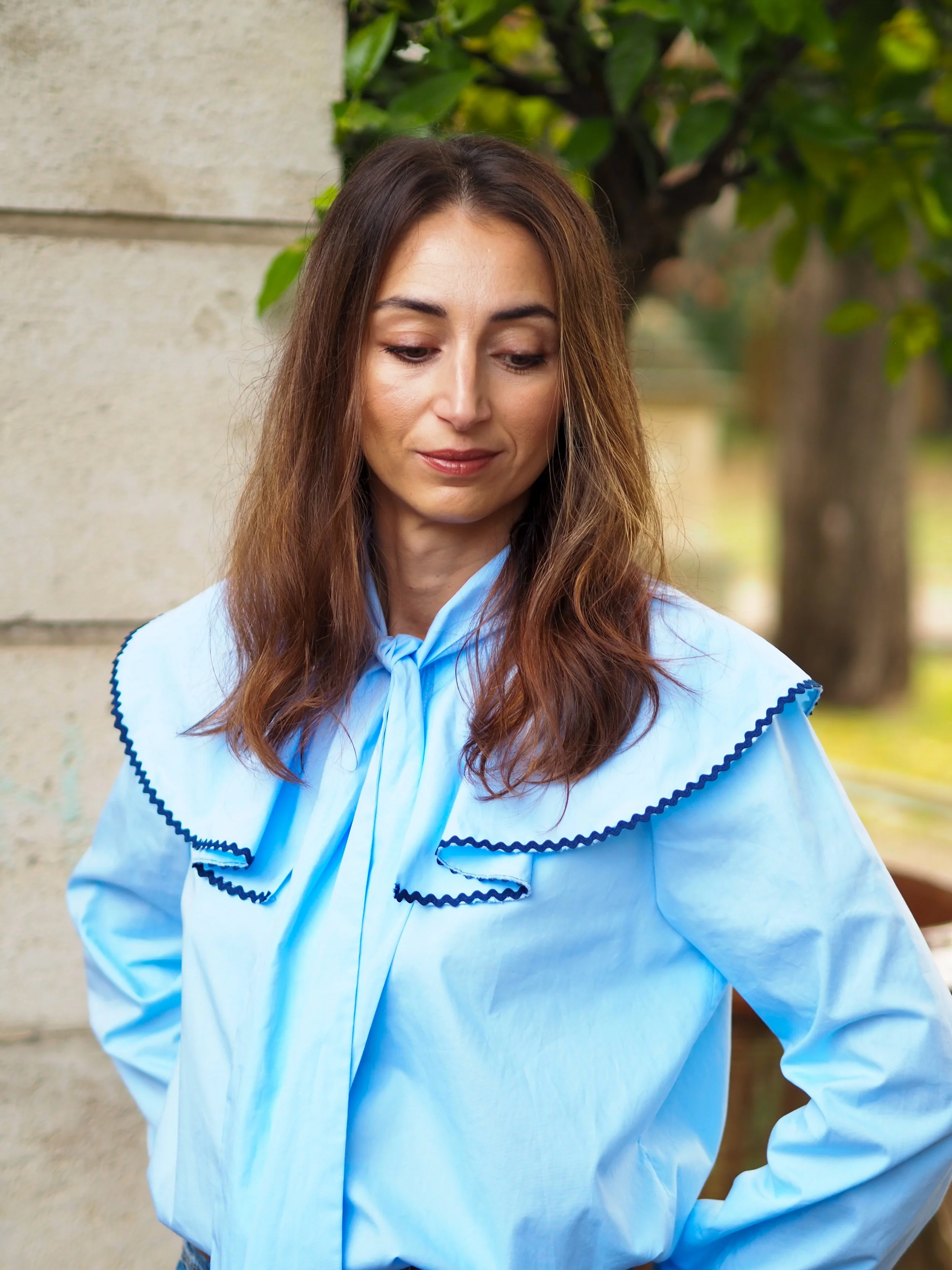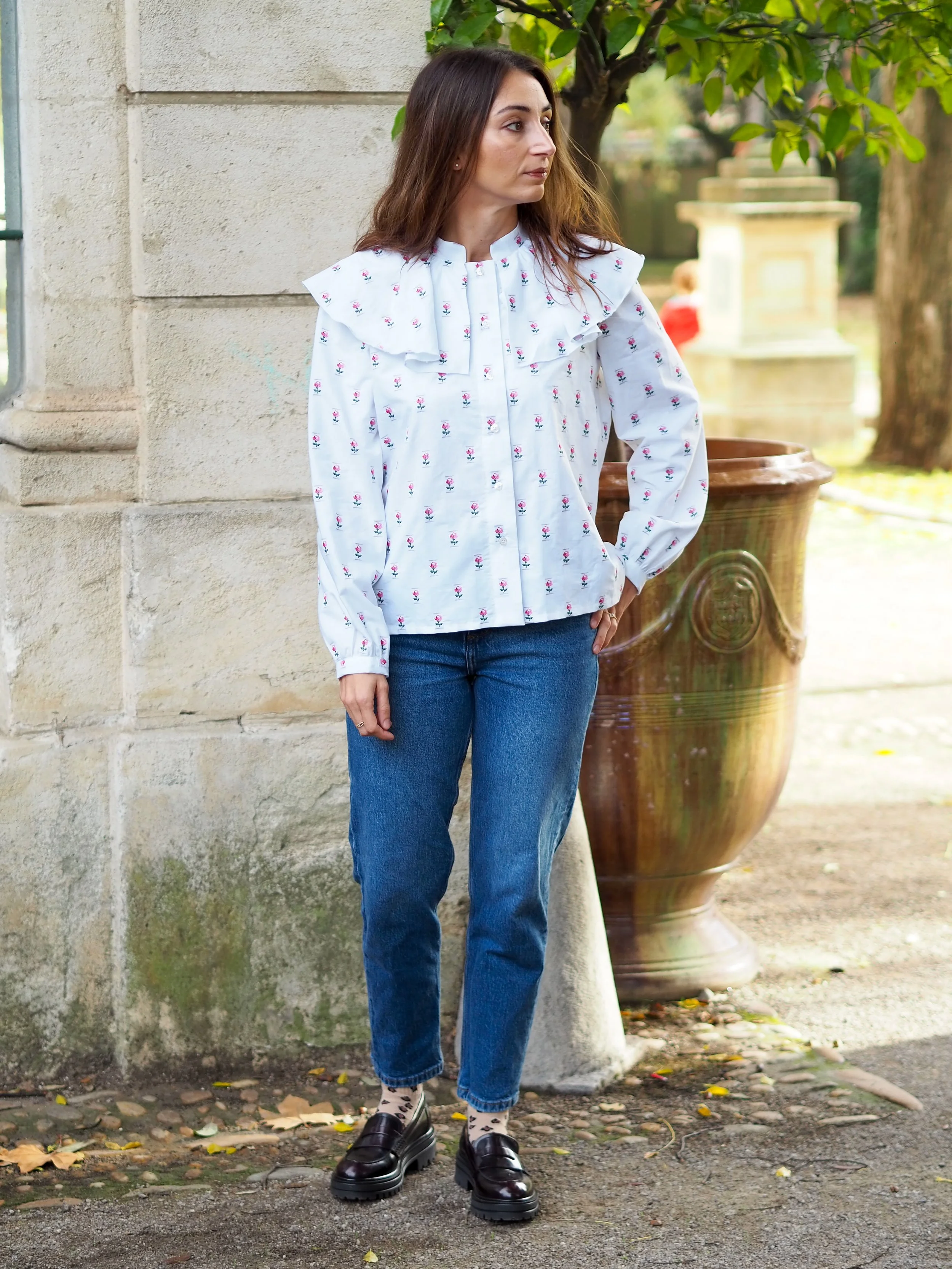 Les manches bouffantes se terminent pas un bracelet de manche afin d’apporter un peu de simplicité.
