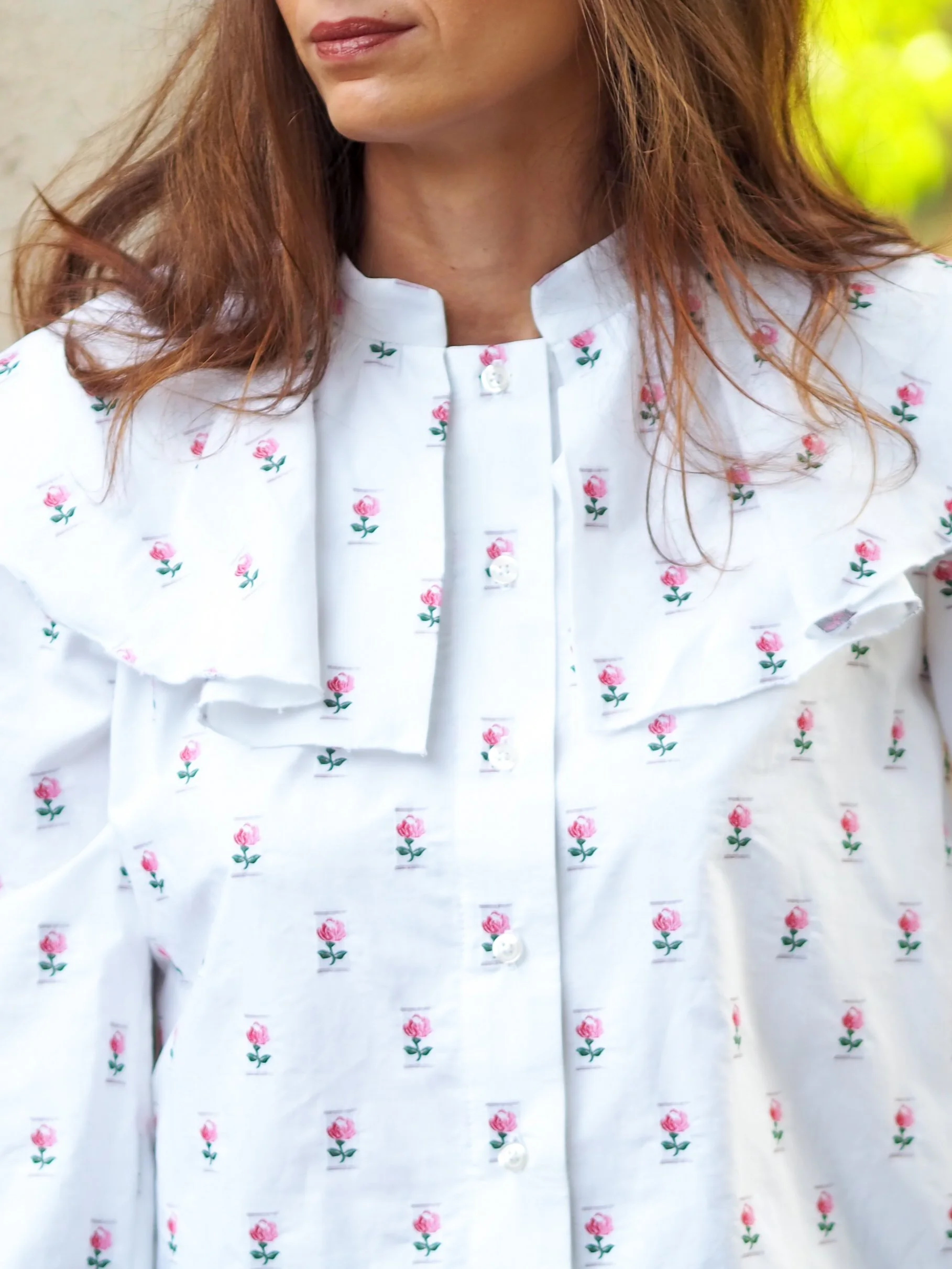 Yushan est une blouse décolleté V s’ouvrant sur le devant grâce à un système de brides et boutons.